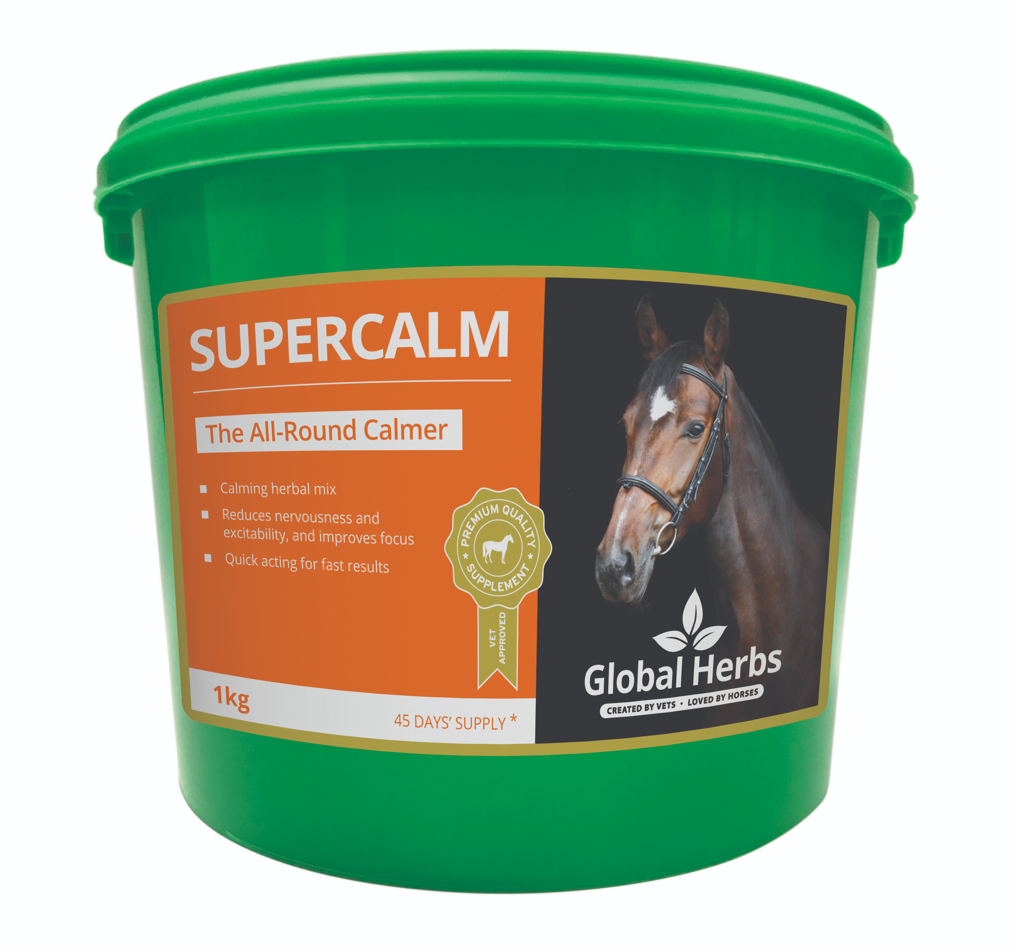 Global Herbs SuperCalm keeps your horse relaxed and easy to manage whilst providing the best nutrition for natural living, fitness and strong body defences.